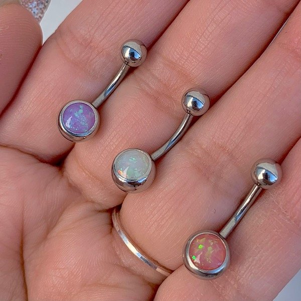 Piercing de acero quirurgico con piedra opalo